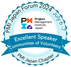 弊社代表の塩田が、PMI日本支部様で2024年に行われたPMI日本フォーラムにおいて、数ある講演の中から選ばれる優秀スピーカー賞を、共同講演者の神庭弘年さんとともに頂戴しました。